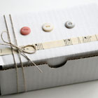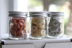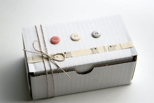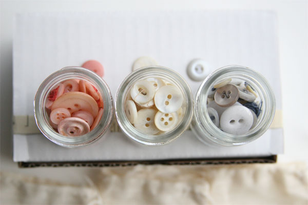 NOTE: All buttons are packaged in small jars with silver-toned lids, encased in hand-stamped muslin pouches. These jars-in-pouches are then packaged within a white box that is adorned with buttons, sheet music, and stamping.