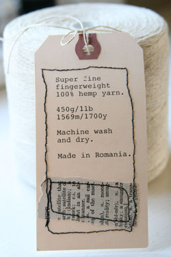 | This hemp yarn is what Jenny uses to create all of her popular knitted and crocheted designs. It is a cone that contains super fine, fingerweight 100% hemp yarn: 450g/1lb; 1569m/1700y. Machine wash and dry. Made in Romania. |