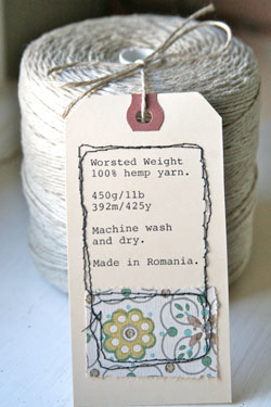 | This is a heavier worsted weight hemp yarn that Jenny uses to create projects like The Mug Rug and other crocheted designs. It is a cone that contains 12-ply, worsted weight 100% hemp yarn: 450g/1lb; 392/425. Machine wash and dry. Made in Romania. |