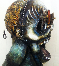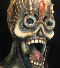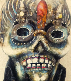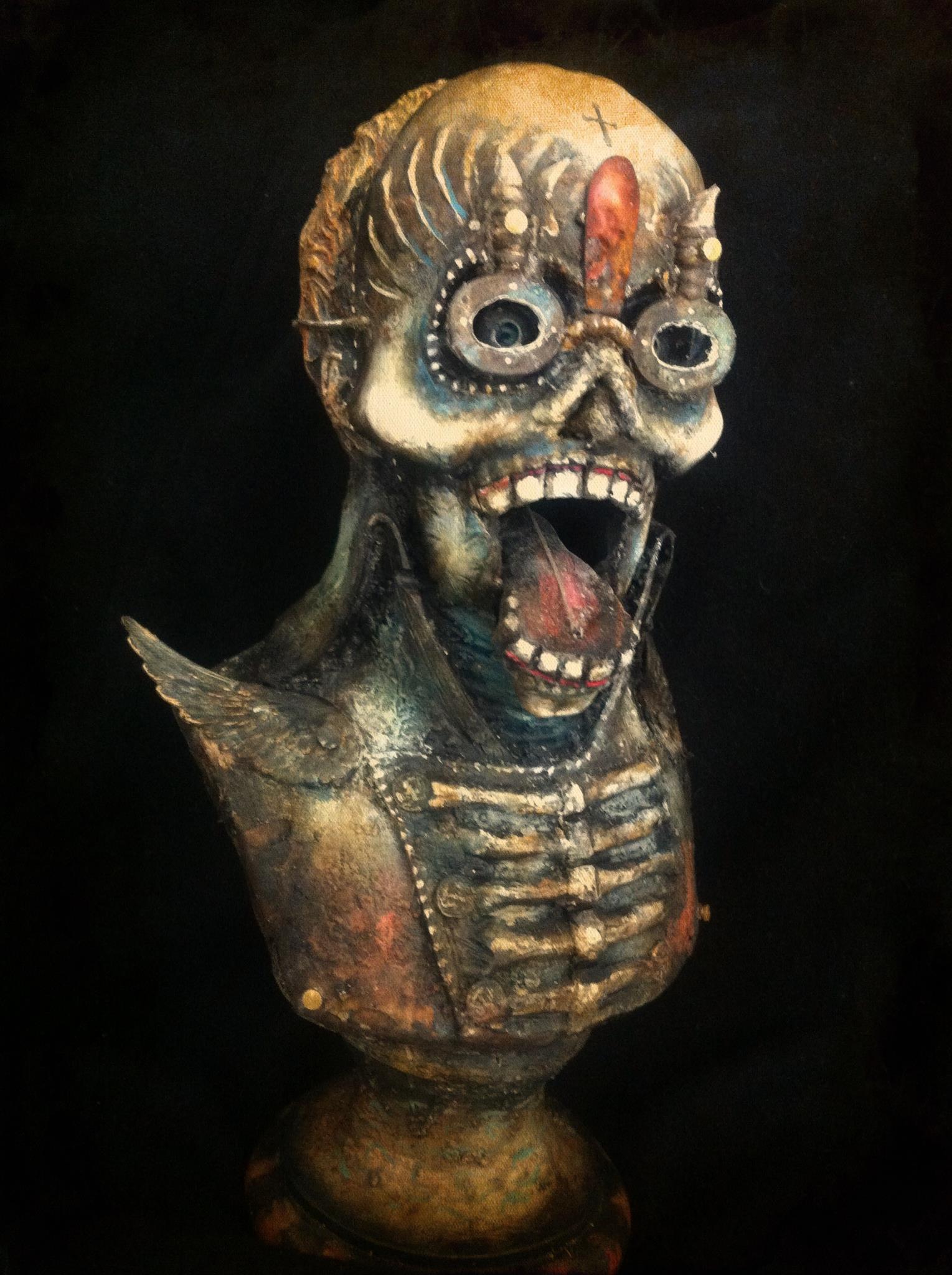 In case you were wondering, the fear of ventriloquist's dummies is called automatonophobic (which by the way includes the fear of wax dummies and automatons like Zoltar and fortune teller). I can understand how ventriloquist dolls could illicit terror and trepidation; typically they are a bit creepy looking. Remember Anthony Hopkins in the film Magic, whose dummy seemed to have a villainous will of its own? Well, in this class, I'm not sure you'll walk away with a self-aware dummy but you will learn how to make deMented dolls capable of flapping their jaws. Due to the time of year (Dia de los Muertos) I thought we'd add an extra twist ... you be transforming your dummy into a Calavera ... a skeletal Day of the Dead character. You start with a mannequin head, doll head, bust, taxidermy item, etc., and then using various found objects you will adorn and transform them into something rich and strange. Most importantly, your bizarre creation will be rigged so that it has the power to speak ... hopefully not on its own.