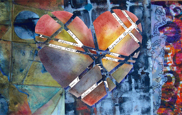 Part of what the journal and its practice offers us is a way to navigate our lives in a visual and expressive manner. We wander, discover, identify, and acknowledge our loves, obstacles, longings, experiences, and dreams. Follow the thread of the source of your creativity symbolized by the hand, meander around the trails and paths of your thoughts. These wanderings become layered maps of a sort, a visual record of our internal and external travels.