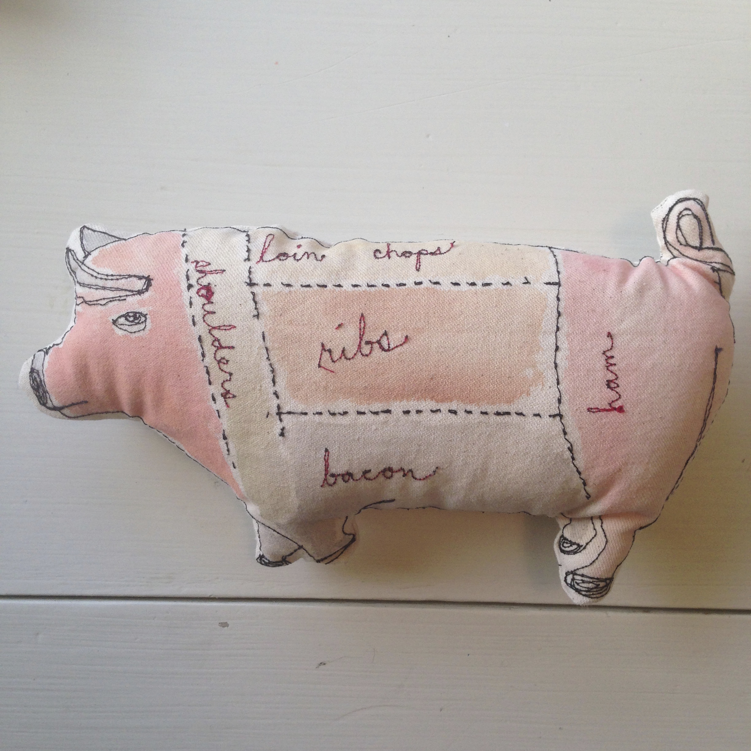 stitched and watercolored work into an actual doll by sewing and